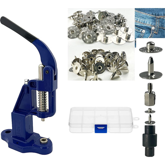 Hobby Trendy Brass 9.5mm Brass Nipple (Jean) Rivets with Matching Setting Dies and Hobby Trendy Hand Press