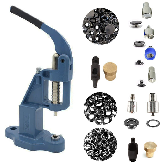 Hobby Trendy Hand Press with Brass 14 & 17 mm Jean Buttons Nipple Rivets 5mm (Nr3) Eyelets 7 and 9 mm Single Capped Rivets matching Dies and Hole Punch
