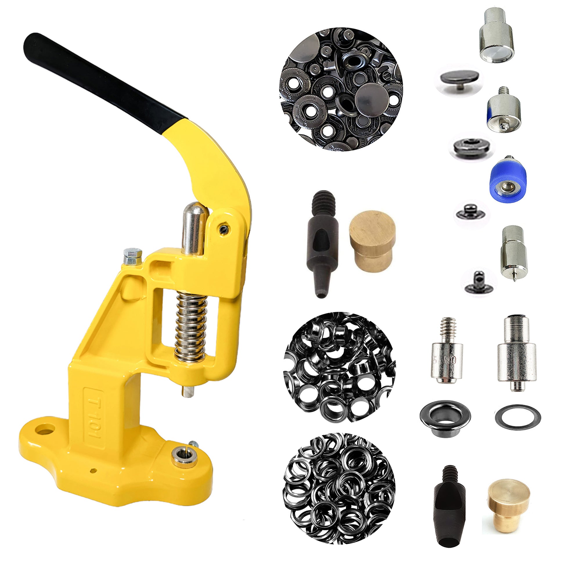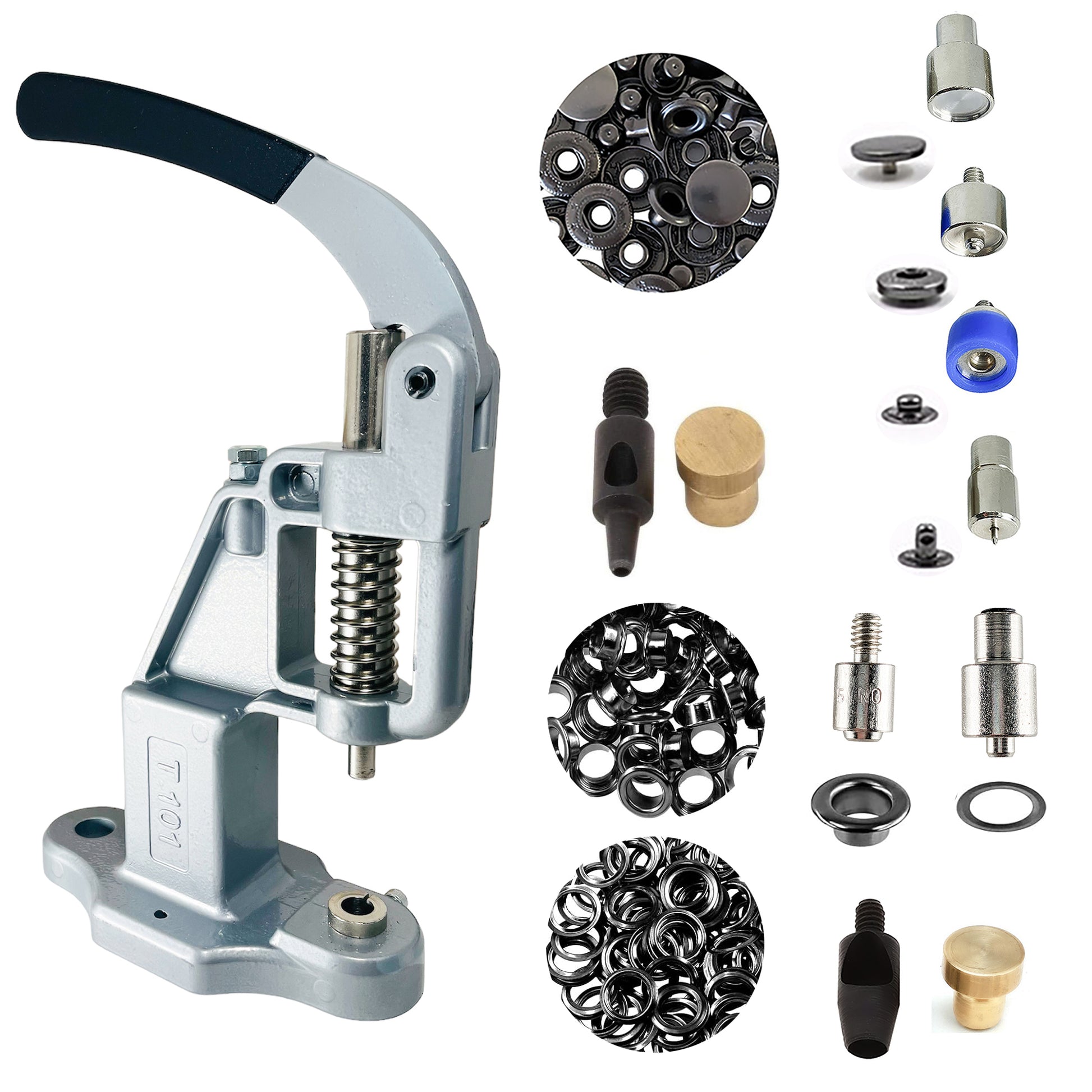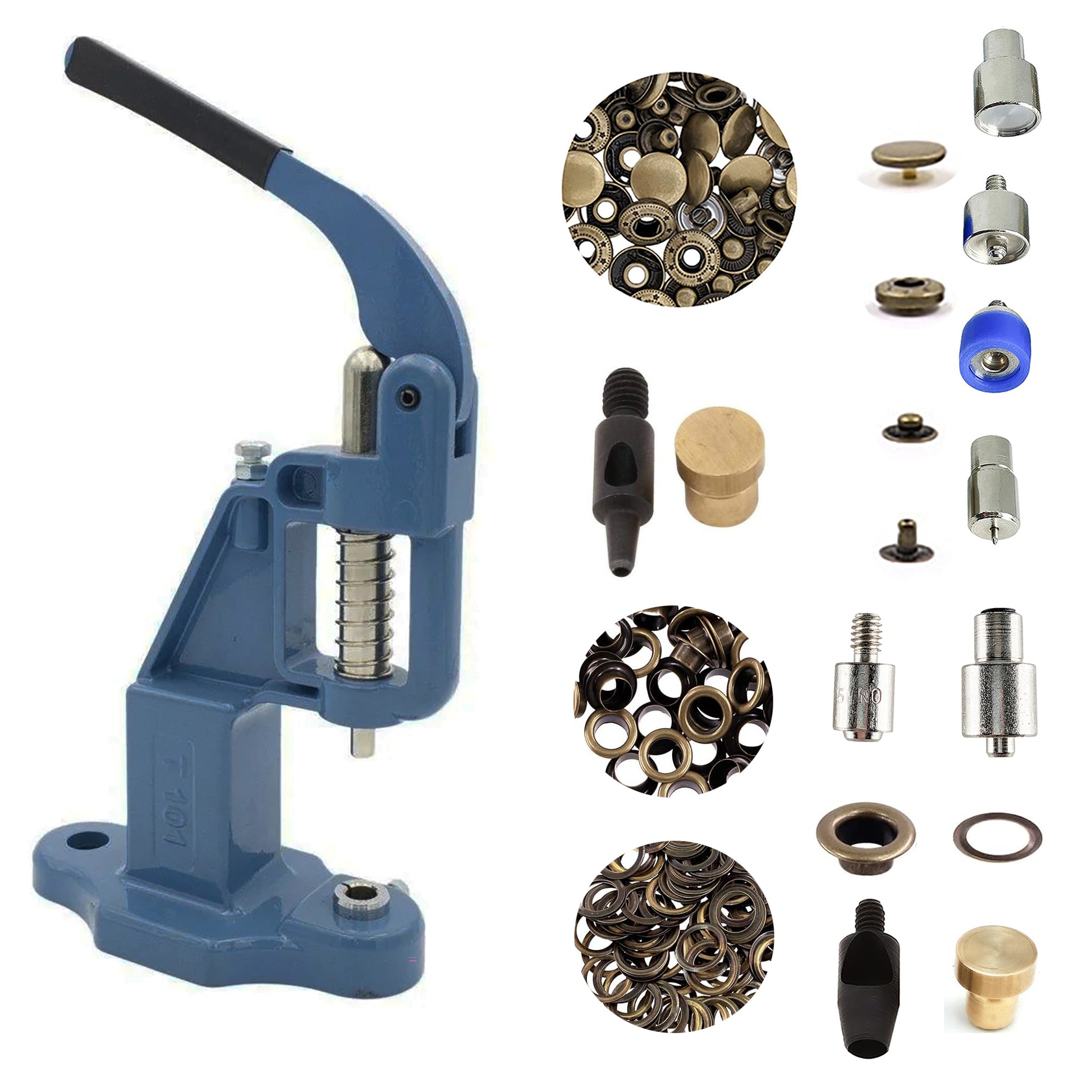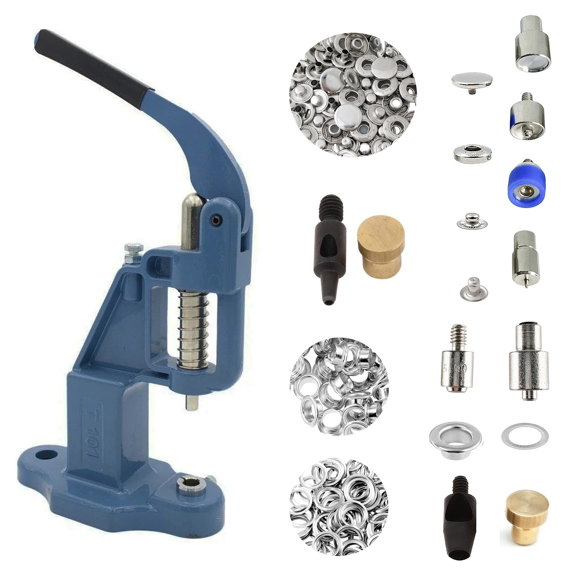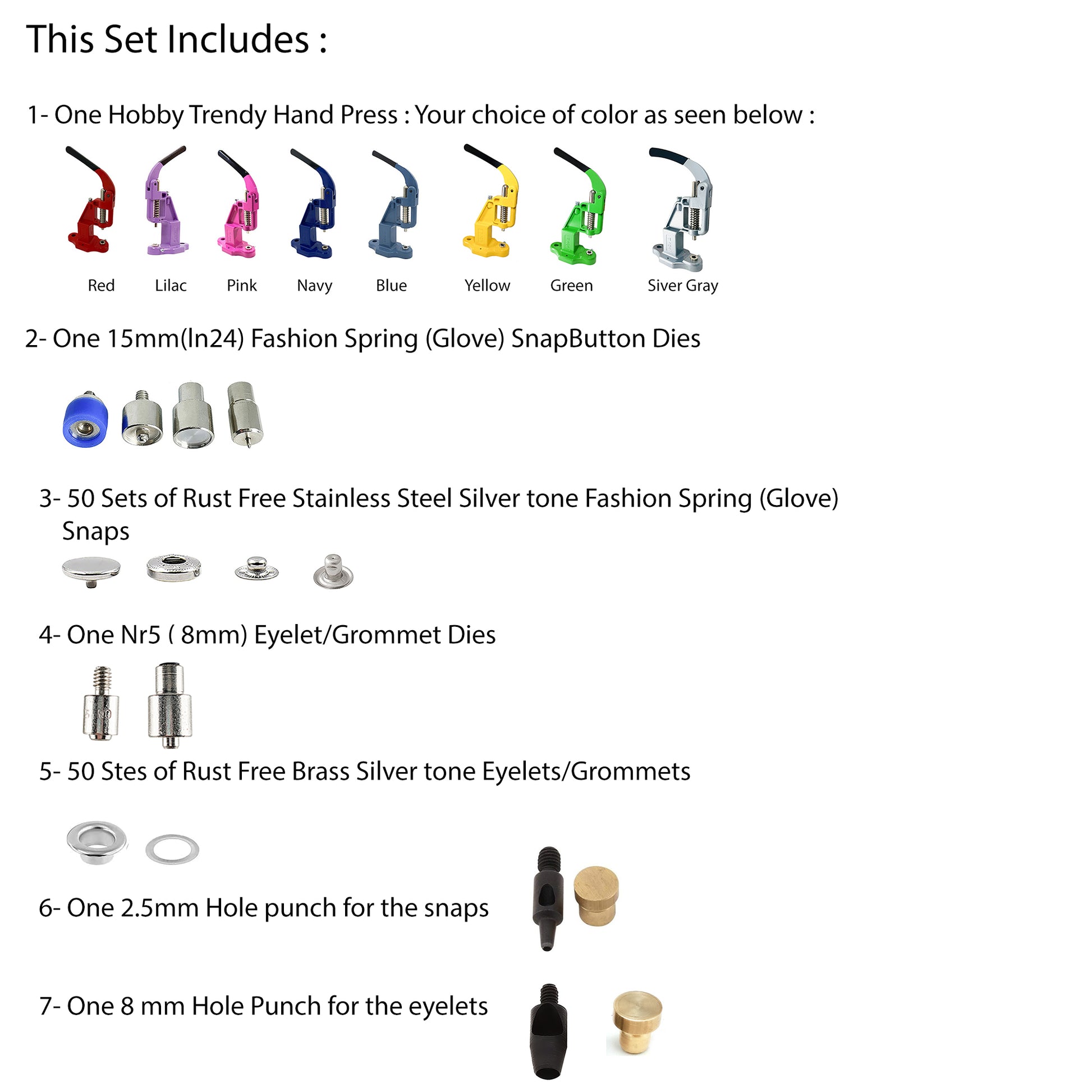 Hobby Trendy Hand Press with Rust Free Steel 50 Sets Ln24 15mm Fashion Spring Glove Snaps and 50 Sets Brass 8 mm (Nr5) Eyelets, Matching Dies and Hole Punches For Leather Bags Jeans