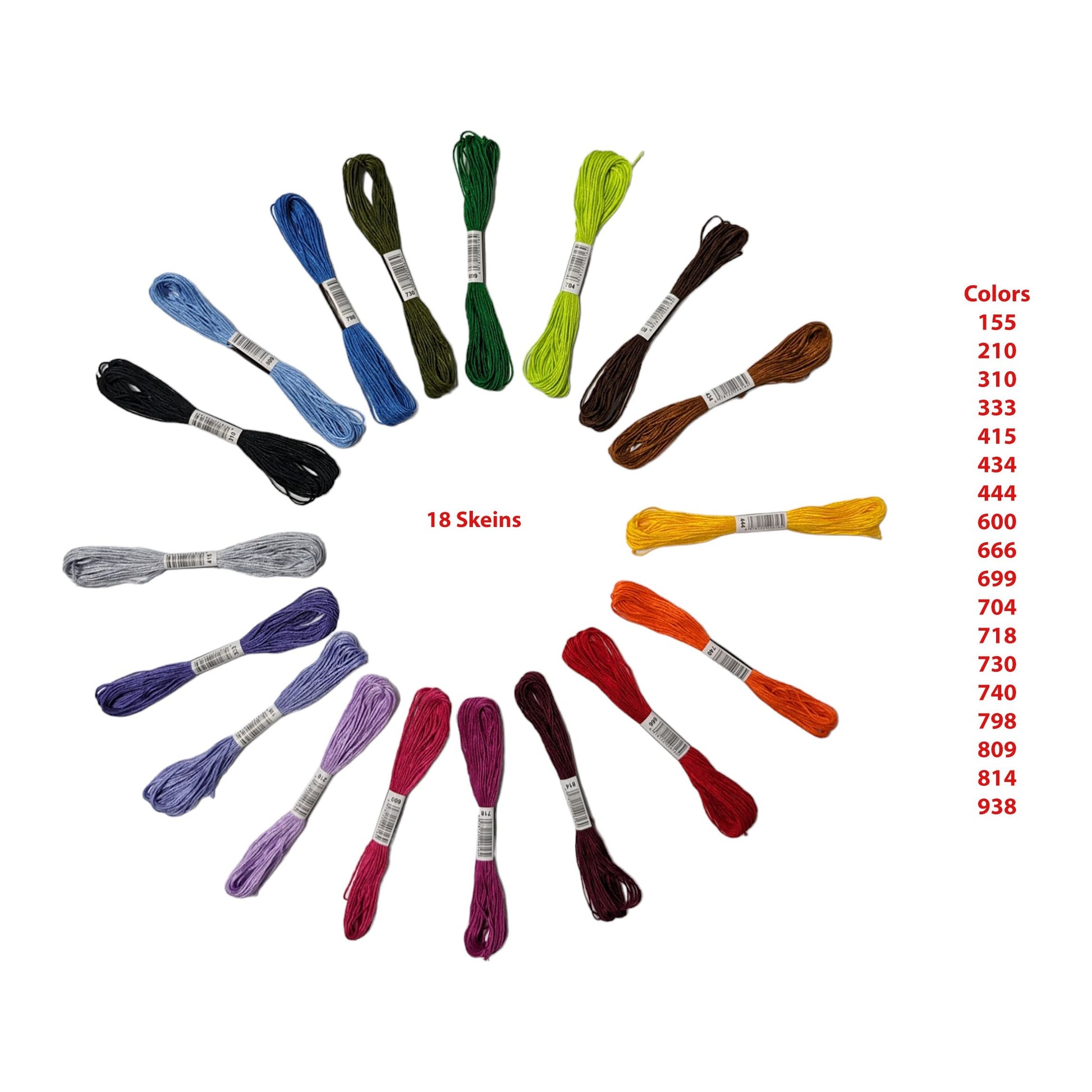 100% Cotton 18 Skeins and Colors of Embroidery Floss as shown in the picture